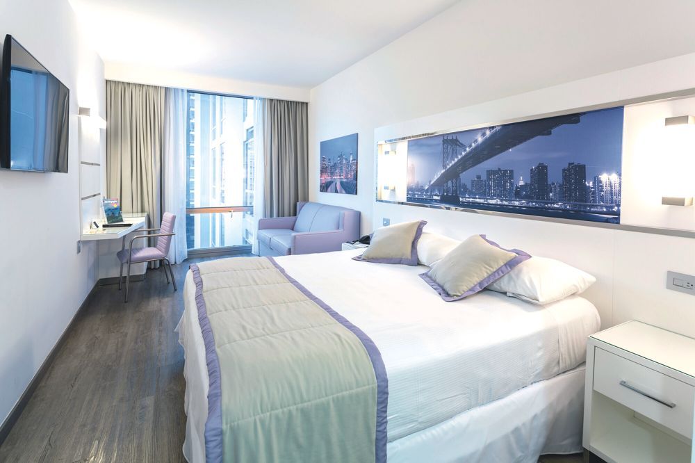 Het indrukwekkende gebouw telt 647 kamers waartussen jij er zeker eentje vindt die bij jou past. De kamers zijn allemaal perfect ingericht met onder andere een minikoelkast, een bureau, een tv met multimedia-aansluitingen, airconditioning en gratis draadloos internet. Er zijn kamers met een queensize bed (150x200 cm), een kingsize bed (180x200cm), kamers met twee enkele bedden, en gezinskamers (sommige met verbindingsdeur).